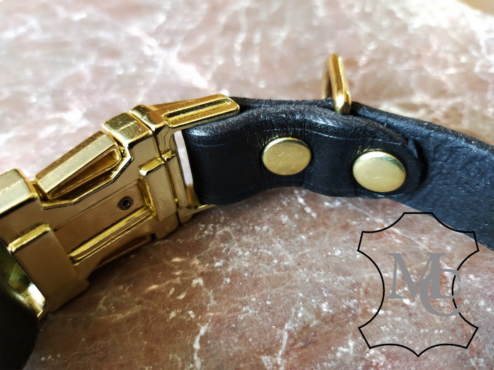 Mijn eerste bandje met messing Click-Buckle voor onze eigen Bruno + de bijbehorende trainingsriem.