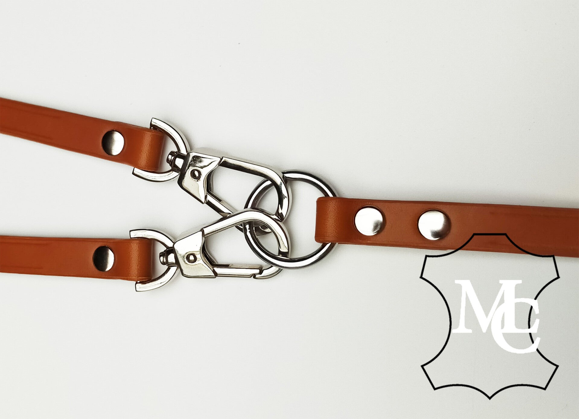De meeste, verkrijgbare Duo- en Tripel-lijnen zijn in de O-ring in het leder vastgezet. Ik heb deze met dubbele musketons variabel gemaakt voor 1, 2, 3 of 4 hondjes. Op deze manier kun je de lijn altijd aanpassen.